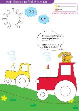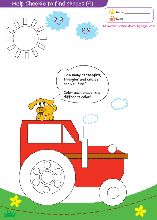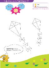 Find Shapes is the next easily downloadable page you and your child can enjoy together. Your child will have an opportunity to go fly a kite with Cheekie the Puppy and his smiling flower friends. This page teaches your child that triangles can come in any size and style, and when your child is done with them, they’ll come in any color, too!